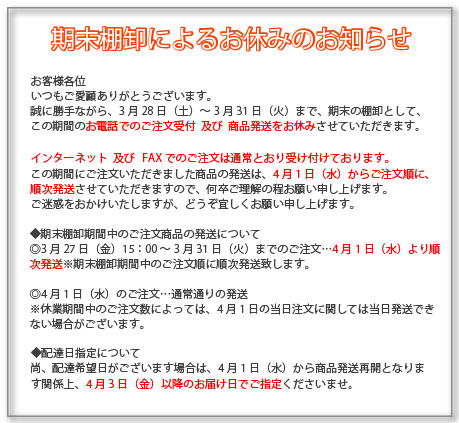 ※15:00以降のご注文・土曜・日曜・祝日のご注文は翌営業日の発送となります。